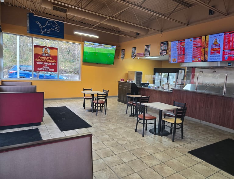 Swing by Mr Fry Fish and Chicken for a hearty meal in a cozy, modern spot right here in the heart of the city.